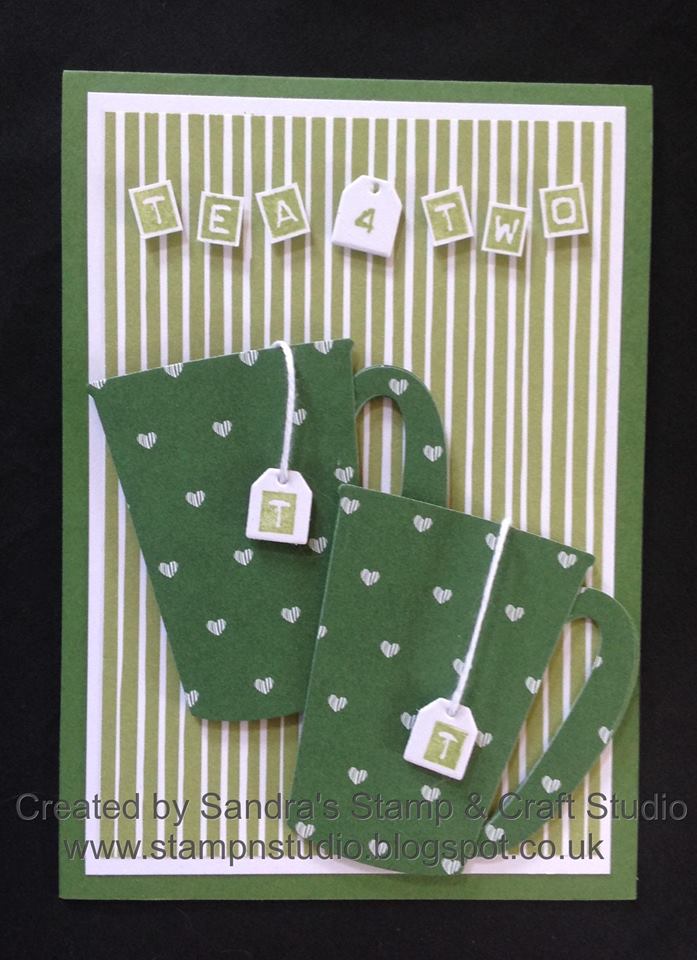 My favourite cuppa is a nice mug of Darjeeling Tea and so I wanted to create a ‘TEA’ option too.  The mug has been made as above but because I wanted to raise on Stampin’ Dimensionals, I cut a card layer too to support the DSP.