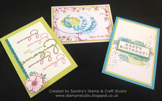 For today’s hop, I am sharing with you a trio of cards I created during a catch up with some of my team last weekend. We all brought a shoebox swap to share, using Sale-A-Bration stamp sets.