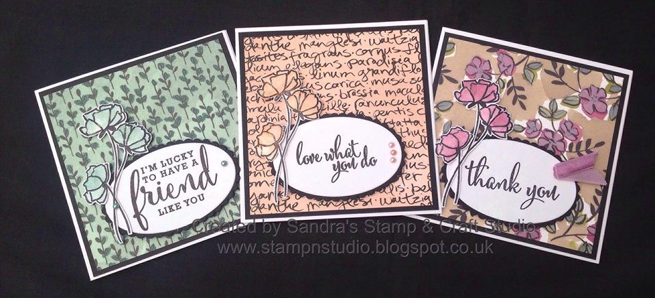 My set of six cards showcase just 6 of the 12 wonderful Share What You love Designer Series Papers #146926. The sentiments and ‘fussy-cut’ flowers are from the Love What You Do stamp set #148042 and have Share What You Love Artisan Pearls #146927 and 1/4″ Velvet Rich Razzleberry Ribbon #147016 adding accents.