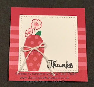 These cards were CASED from fellow Demonstrator Ronda Wade on one of her Demo Team Training classes. These were so cute, I changed the measurements to fit our UK size A4 card, so they ended up 7cm square. Enabling SIX bases from one sheet of cards and still fitting inside Stampin’ Up! mini square envelopes and then into a pizza box as a gift.