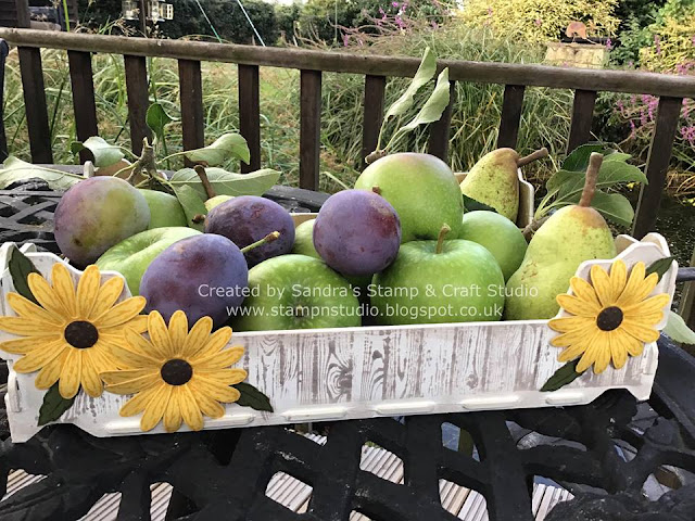 I have just given a basket of fruit from trees at the bottom of our garden, to a lovely customer who dropped in for a cuppa on her way back from hospital appointment. Feeling a bit Autumnal and thinking of harvest festivals, I decided on the gorgeous Daisy Delight stamp set #143669 and coordinating Daisy Punch #143713.