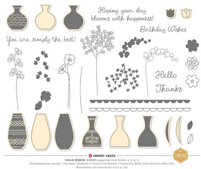 I think at times like this, flowers can say it all.  What better combination than the Varied Vases stamp and punch bundle #148381.  This set is so versatile, with 34 photopolymer stamps to choose from, combinations can be tailored to any occasion.