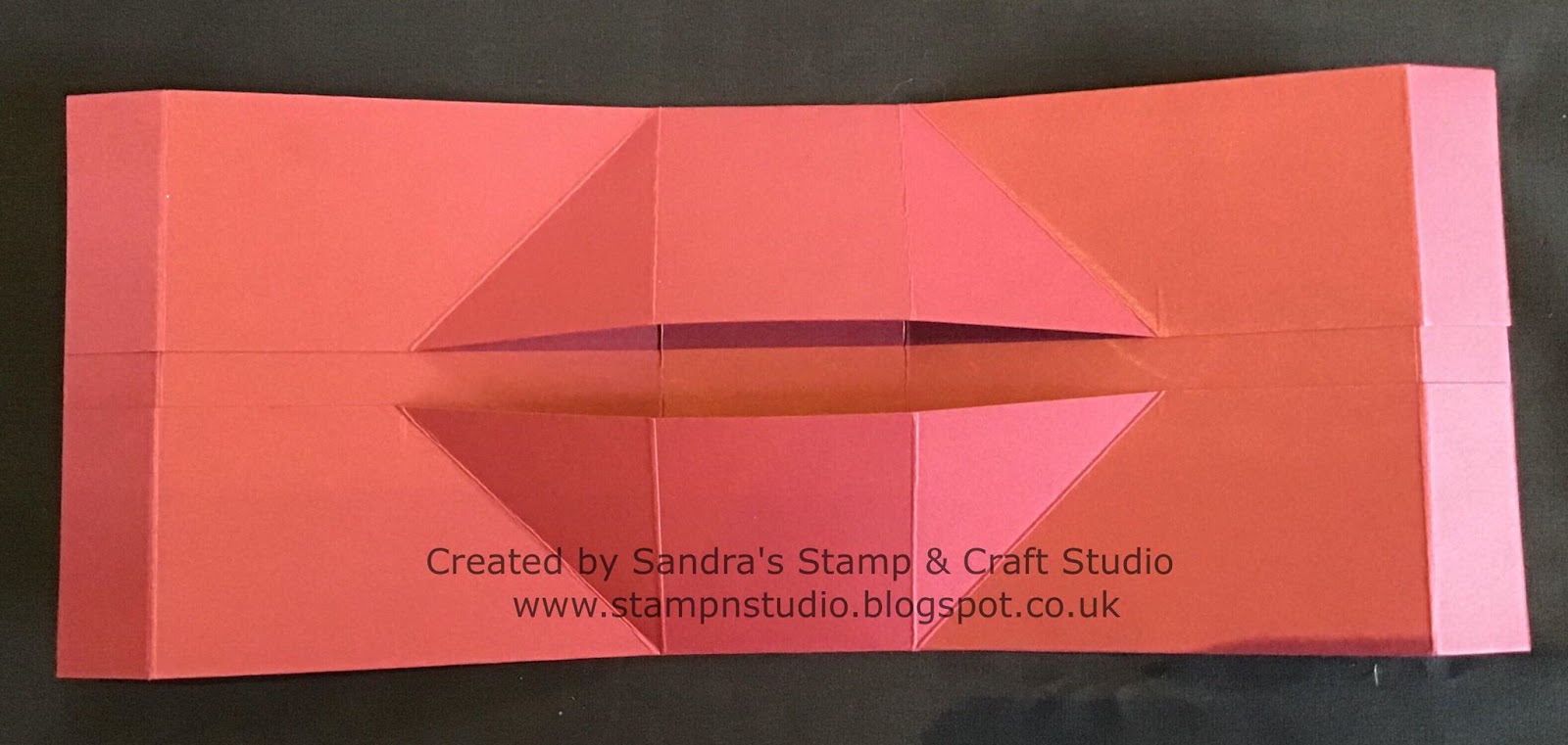 The centre ‘box’ will now open up with the triangular areas backing onto the front and back of your box.