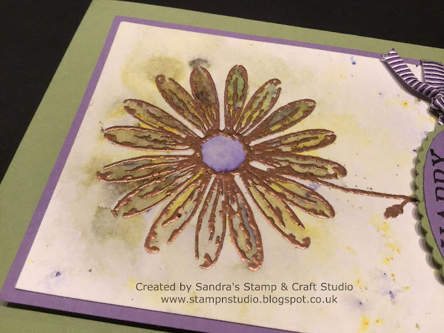 Beautiful embossing on your Daisy Delight. I love the rich colors of copper and the Brusho!