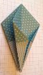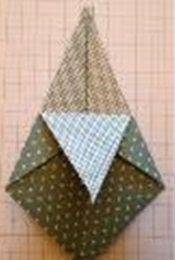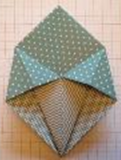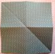 2.  Fold one side only point to point diagonally and burnish edges.  Fold back on itself and  fold the same fold facing the other directions and burnish.