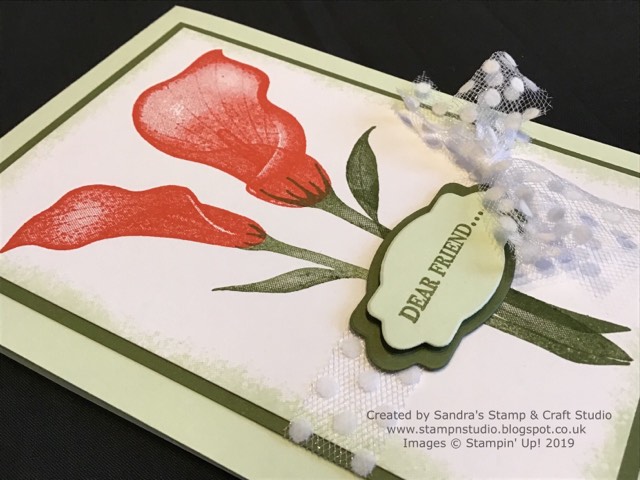 These really are a fabulous colour palette and my initial thoughts turned to Christmas. However, I wanted to use the Lasting Lily stamp set from Sale-A-Bration for our Team Shoebox swaps at the weekend and so decided to use this combination.