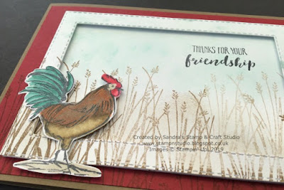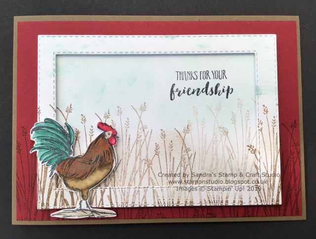 Next is my colourful rooster, stamped and coloured using the Stampin’ Blends listed in the products below.