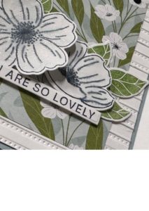 For my ‘sneak peak’ this month (photo below), I’ve taken a clip from my Fancy Fold card. You can catch a glimpse of the beautiful ‘new’ Lovely Stripes 3D Textured Embossing Folder, that accompanies this Suite. You can receive the bumper Tutorial with full details, as a Customer or Team member of any of the participating Demonstrators, so be sure to place a qualifying order and receive our Bumper Bundle for FREE.